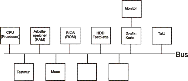 Auff Teile sind über Leitungen niteinander verbunden. Diese Verbindung heißt Bus.