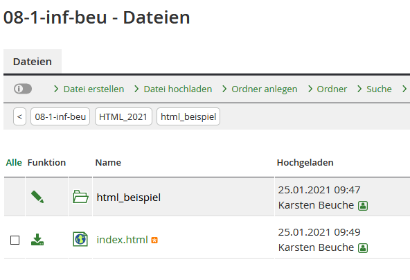 Hinweis: Das Öffnen der Seite geht auch durch doppeltes Anklicken der HTML-Datei.